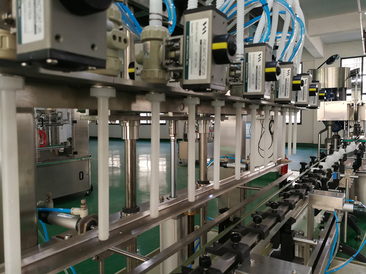 適用于不同規(guī)格容器的灌裝,可在數(shù)分鐘內(nèi)切換灌裝規(guī)格,灌裝周期短、生產(chǎn)能力高。更換灌裝規(guī)格無(wú)需增添備件,只需作調(diào)整即可完成,用戶可根據(jù)自己的生產(chǎn)能力選擇灌裝數(shù)量確定灌裝頭數(shù),觸摸式操作彩屏,可顯示生產(chǎn)狀況、操作程序、灌裝方式等,畫面直觀、操作簡(jiǎn)單、維護(hù)方便。每個(gè)灌裝頭設(shè)有卡瓶口設(shè)置、確保注料對(duì)位準(zhǔn)確。