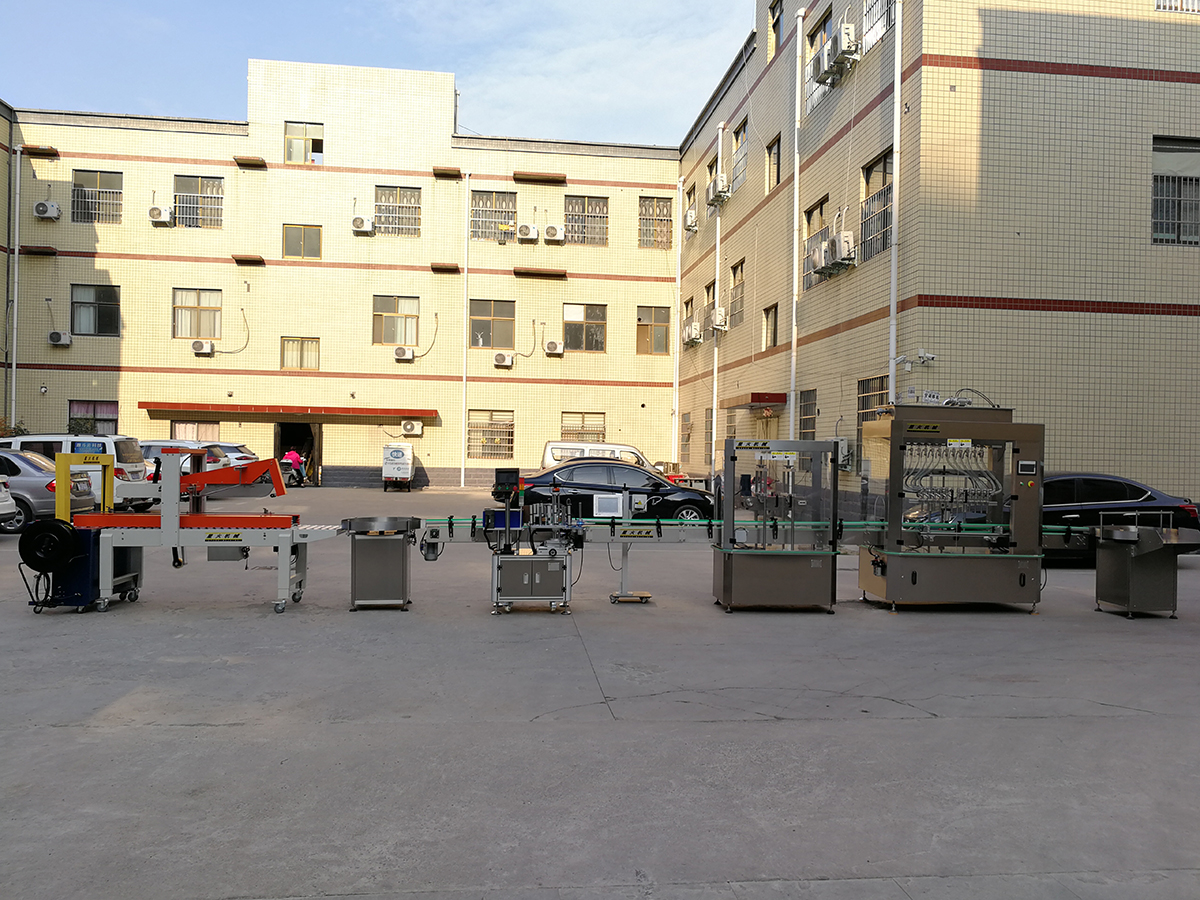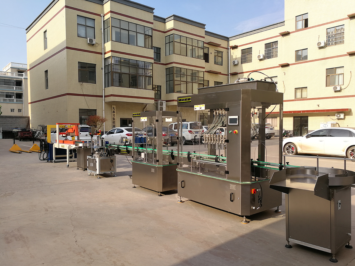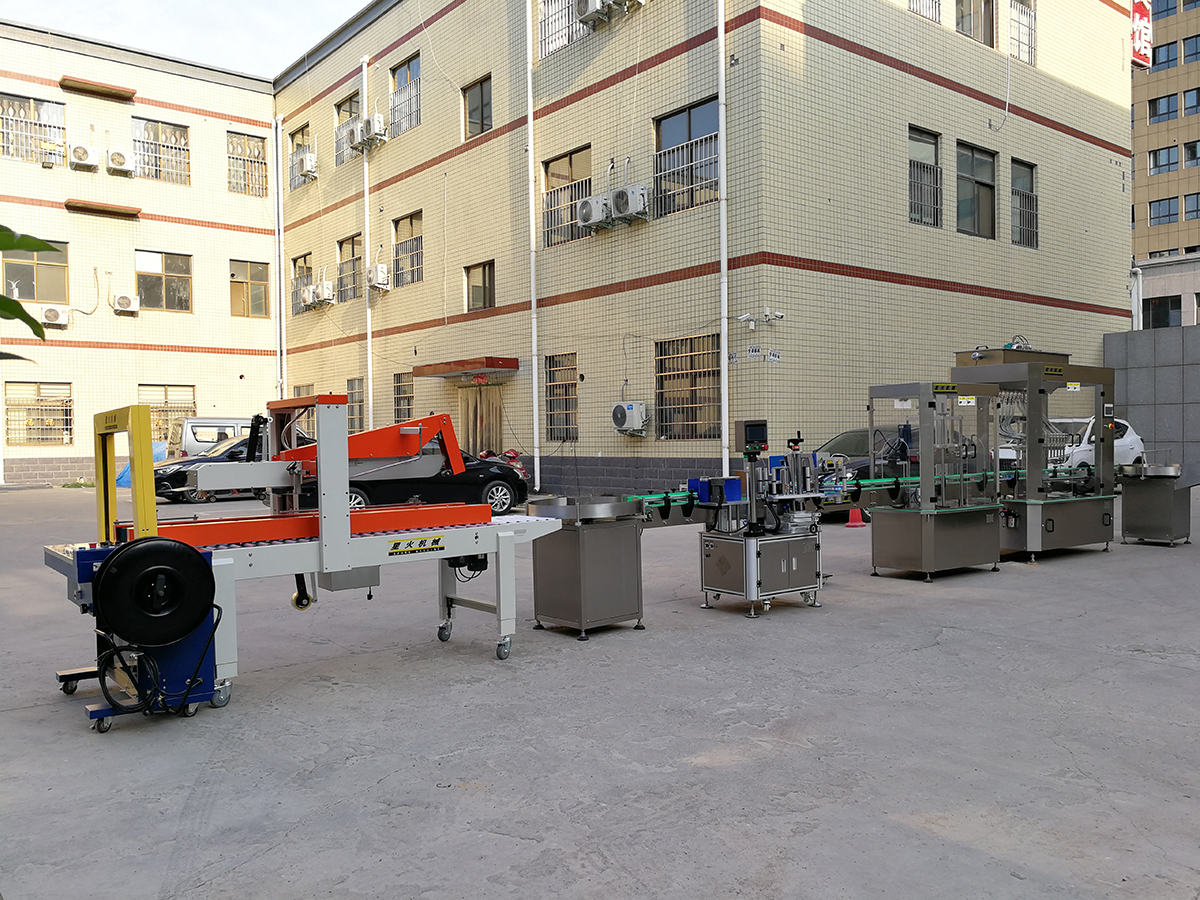本條灌裝生產線滿足了自動上瓶、上料、灌裝、旋蓋、貼標、噴碼、封箱等功能。