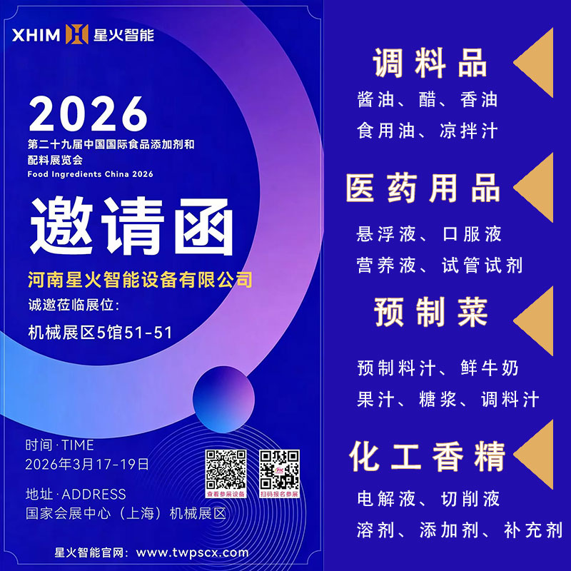此次星火智能攜調料汁灌裝及設備亮相FIC2026,會在展會上展示調料汁灌裝機設備的一整套運作能力,讓用戶親眼看到液體物料從原材料直至成品輸出的整個運作流程,助力食品行業的高質量發展,歡迎來自全國各地域的知名人士前來參展觀看。